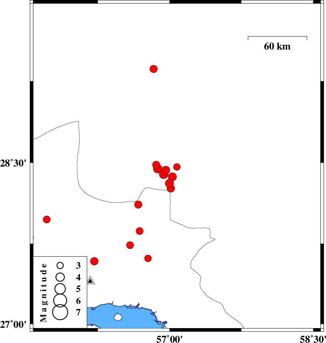 | 2023/03/03 | 02:50:02.2 | 06:20:02.2 | 27.613 | 56.774 | 21 | ML3.3 | Hormozgan Province, 50 km North-West of Dehbarez | ||