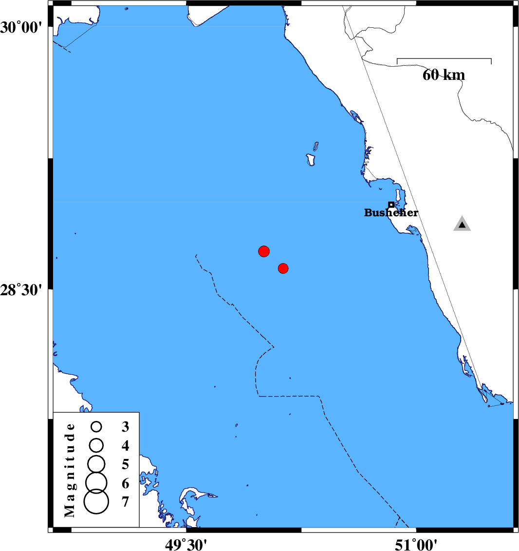 | 2023/03/06 | 14:44:36.0 | 18:14:36.0 | 28.619 | 50.131 | 17 | ML3 | Persian Gulf, 80 km South-West of Busheher |