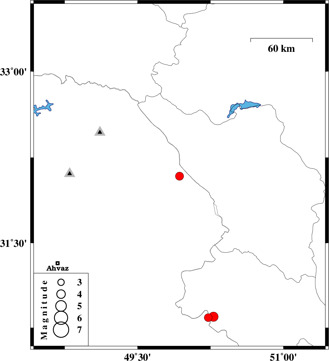 | 2023/03/16 | 20:41:45.1 | 00:11:45.1 | 30.848 | 50.281 | 12 | ML4.4 | Kohkiluieh va boyerahmad Province, 28 km North of Behbahan |