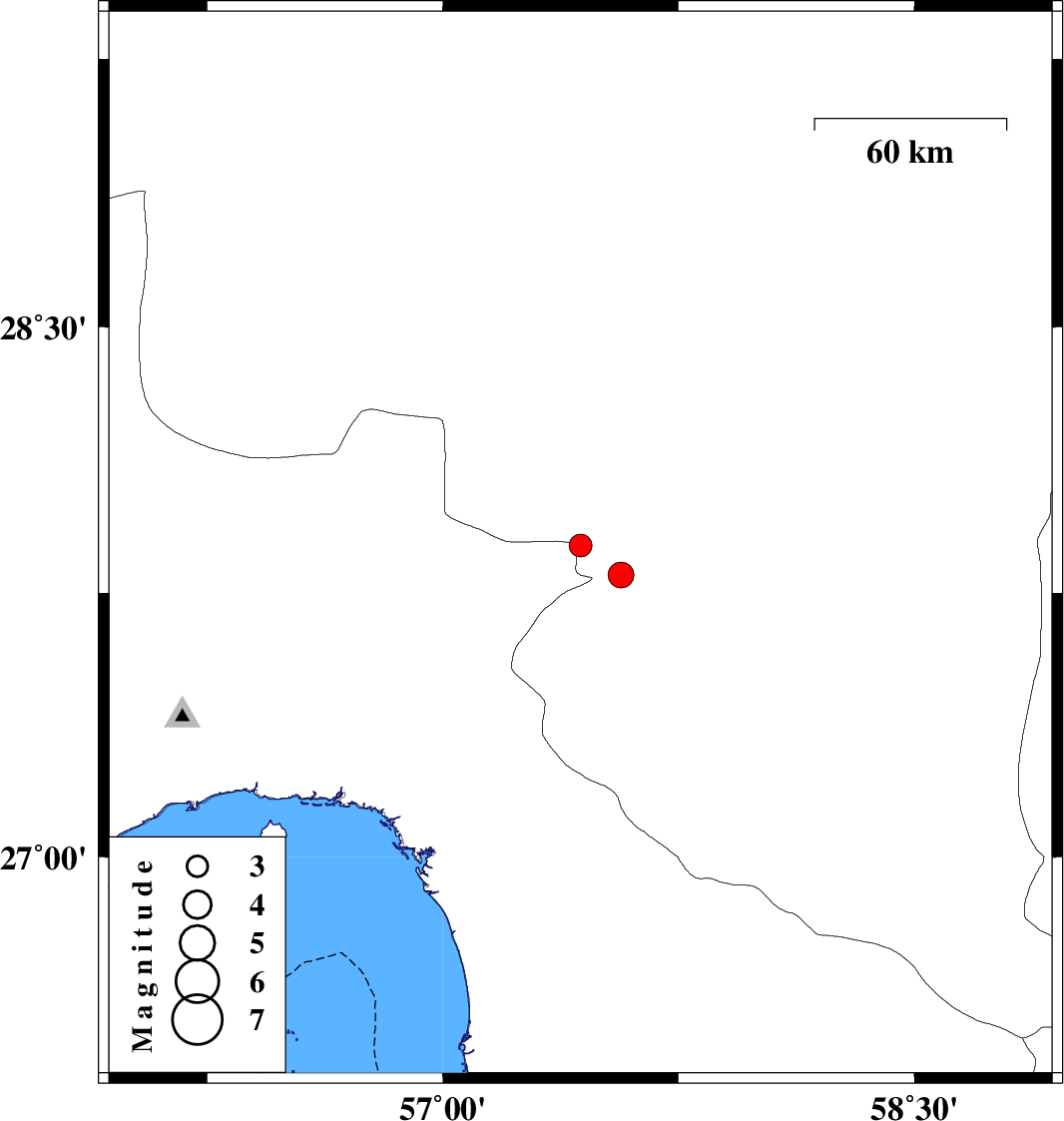 | 2023/03/16 | 09:55:37.4 | 13:25:37.4 | 27.8 | 57.567 | 16 | ML3.6 | Kerman Province, 21 km South-West of Kahnuj |