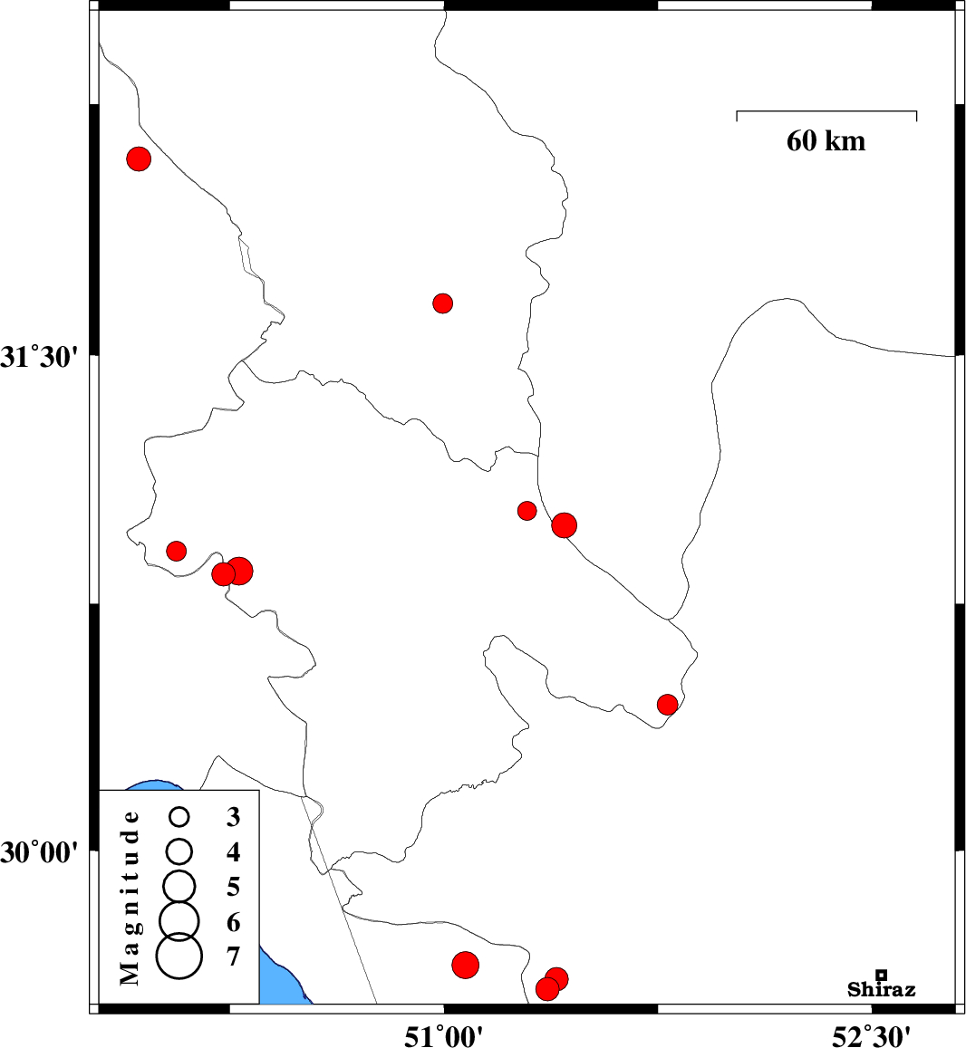 | 2023/03/19 | 08:28:43.4 | 11:58:43.4 | 29.65 | 51.075 | 10 | ML4.3 | Bushehr Province, 45 km North-West of Borazjan | ||