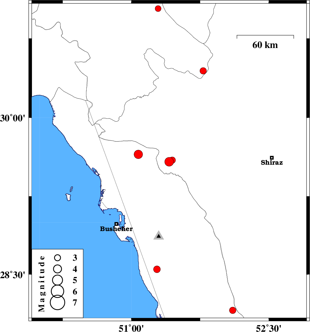 | 2023/03/19 | 08:28:43.4 | 11:58:43.4 | 29.65 | 51.075 | 10 | ML4.3 | Bushehr Province, 45 km North-West of Borazjan |