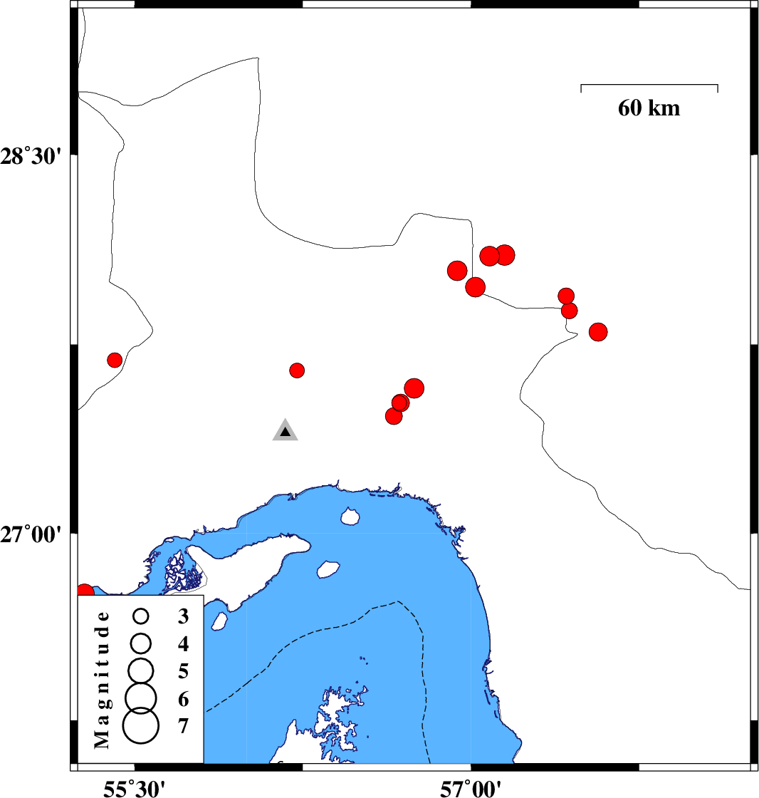 | 2023/04/07 | 02:20:21.5 | 05:50:21.5 | 27.647 | 56.224 | 16 | ML3 | Hormozgan Province, 52 km North of Bandar-e abbas | ||