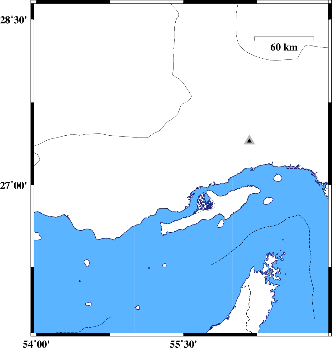 | 2023/03/29 | 16:41:17.8 | 20:11:17.8 | 26.666 | 54.225 | 12 | ML3.3 | Persian Gulf, 61 km South-West of Bastak | ||