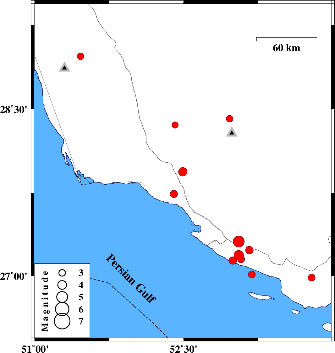 | 2023/04/11 | 21:04:06.8 | 00:34:06.8 | 27.014 | 53.189 | 12 | ML3.3 | Persian Gulf, 36 km South of Lamerd | ||