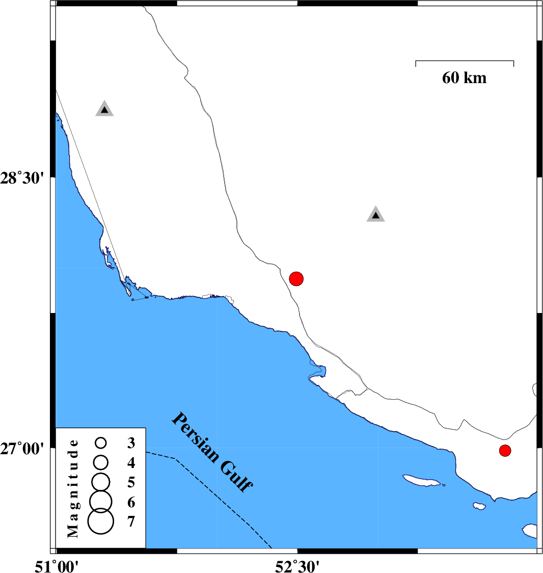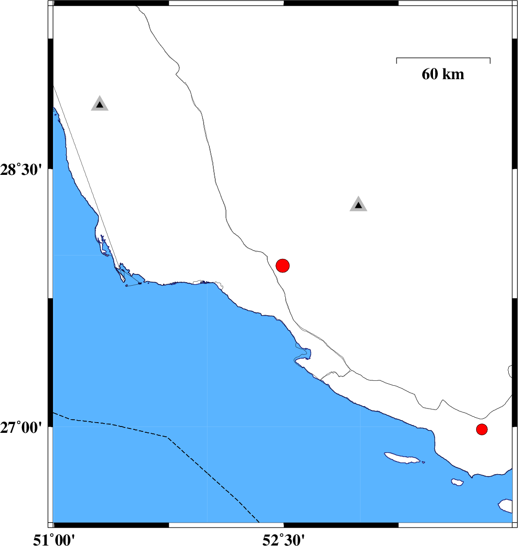 | 2023/04/26 | 18:12:25.1 | 21:42:25.1 | 27.939 | 52.492 | 10 | ML4 | Fars Province, 21 km North-East of Jam | ||