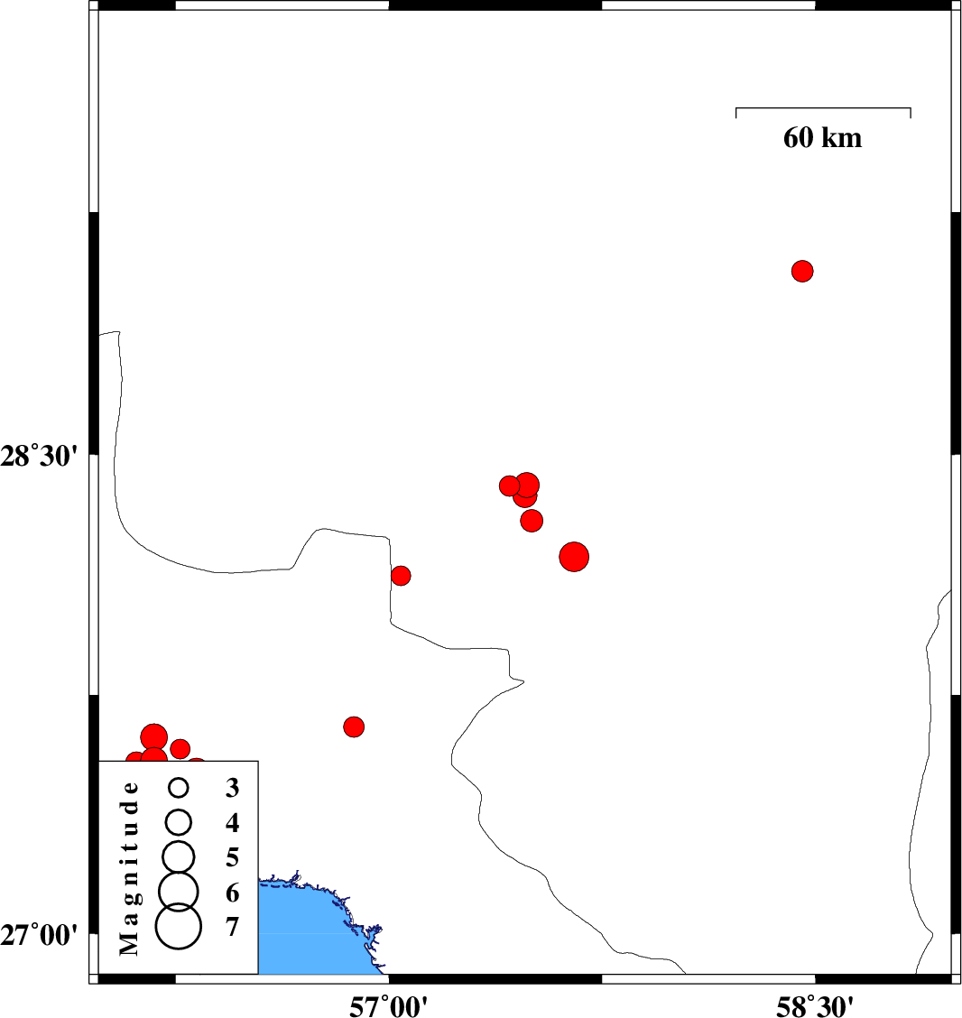 2022/03/02 03:06:59.3 06:36:59.3 28.18157.65110 ML4.6 Kerman Province, 26 km North of Kahnuj