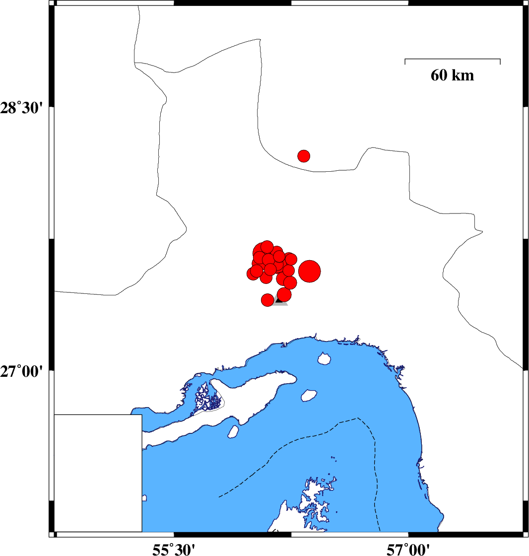 2021/11/14 16:10:08.1 19:40:08.1 27.63656.23412 ML3.7 Hormozgan Province, 50 km North of Bandar-e abbas