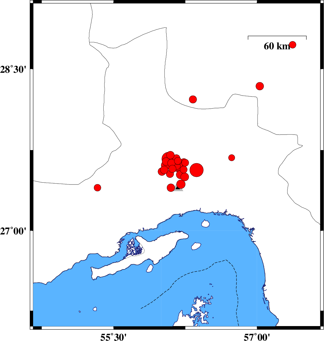 2021/11/14 14:24:16.6 17:54:16.6 27.50156.24310 ML3.8 Hormozgan Province, 35 km North of Bandar-e abbas