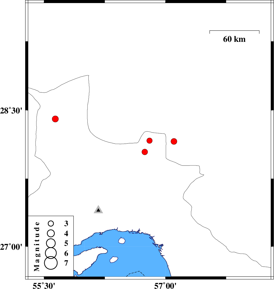 | 2023/05/14 | 01:01:29.6 | 04:31:29.6 | 28.043 | 56.744 | 12 | ML3.3 | Hormozgan Province, 94 km -West of Kahnuj |