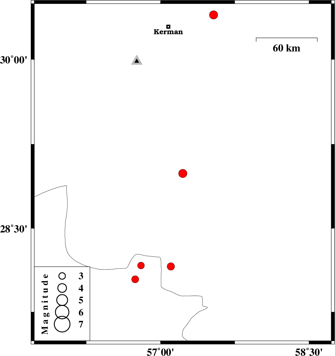 | 2023/06/12 | 09:10:55.2 | 12:40:55.2 | 28.99 | 57.225 | 17 | ML3.8 | Kerman Province, 61 km North-West of Jiroft | ||
