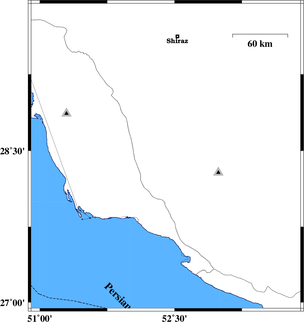 2023/05/27 | 19:18:26.1 | 22:48:26.1 | 28.245 | 51.344 | 12 | ML3.2 | Bushehr Province, 45 km South of Khormog | ||