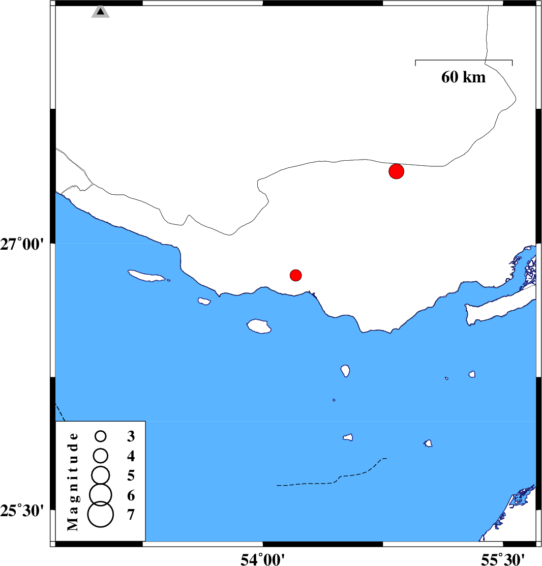 2023/06/22 | 12:05:08.3 | 15:35:08.3 | 26.821 | 54.205 | 12 | ML3.3 | Hormozgan Province, 45 km South-West of Bastak | ||