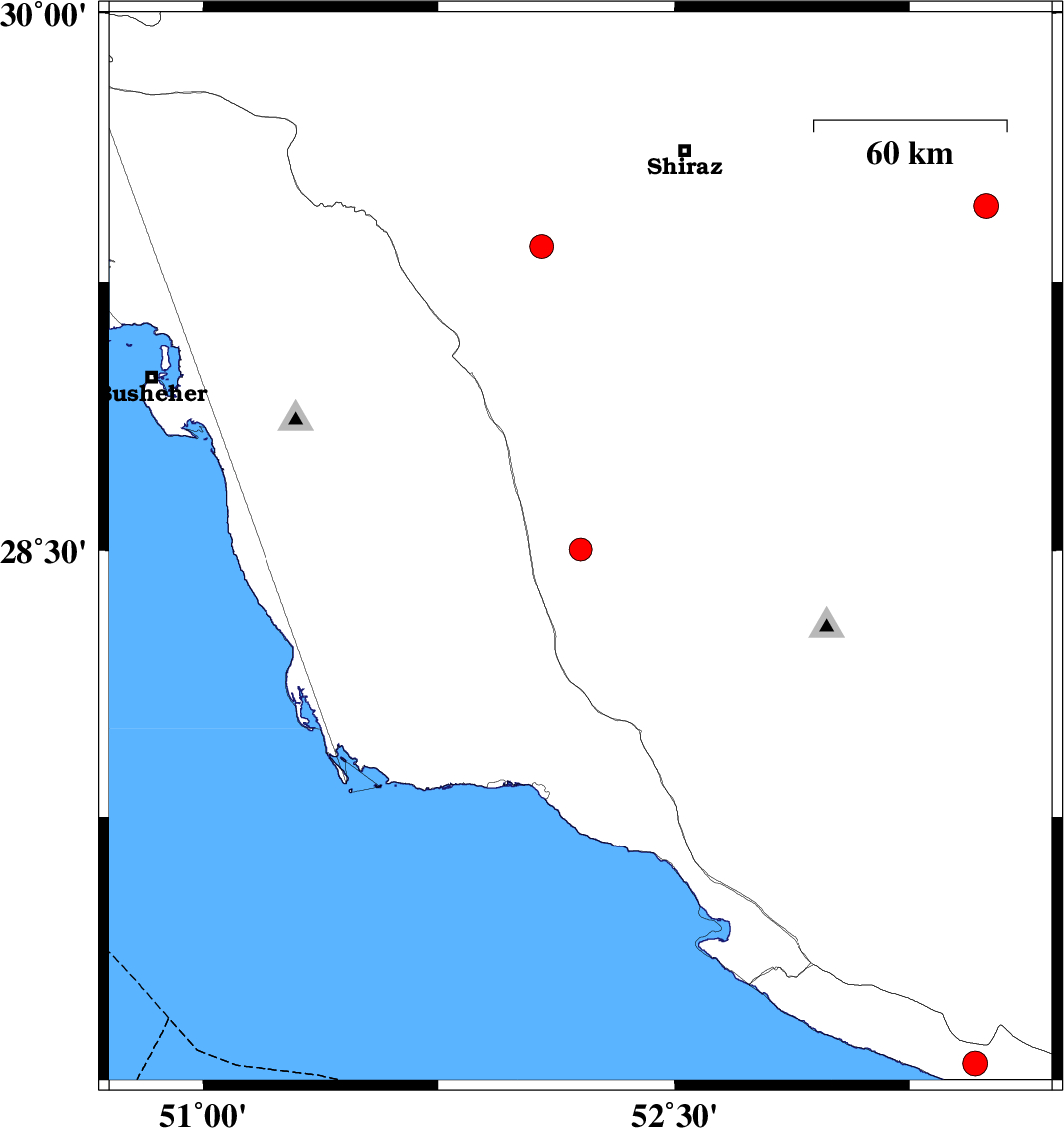 2023/07/29 | 08:32:40.1 | 12:02:40.1 | 28.503 | 52.202 | 12 | ML3.2 | Fars Province, 42 km South-East of Farashband | ||