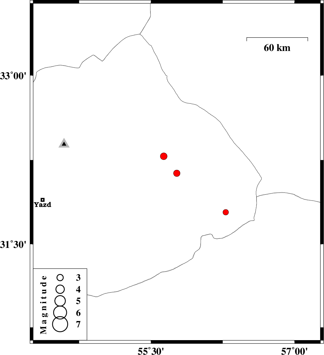 2023/08/05 | 12:01:14.8 | 15:31:14.8 | 32.133 | 55.77 | 12 | ML3.1 | Yazd Province, 69 km North-East of Bafq | ||
