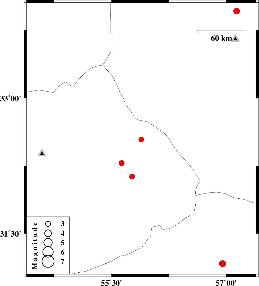 2023/08/06 | 09:26:44.2 | 12:56:44.2 | 31.163 | 56.953 | 12 | ML3.8 | Kerman Province, 18 km South-East of Ravar | ||