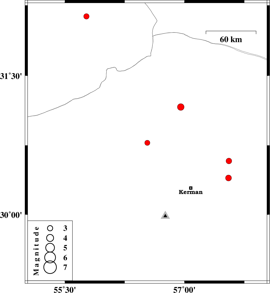 2023/08/06 | 09:26:44.2 | 12:56:44.2 | 31.163 | 56.953 | 12 | ML3.8 | Kerman Province, 18 km South-East of Ravar | ||