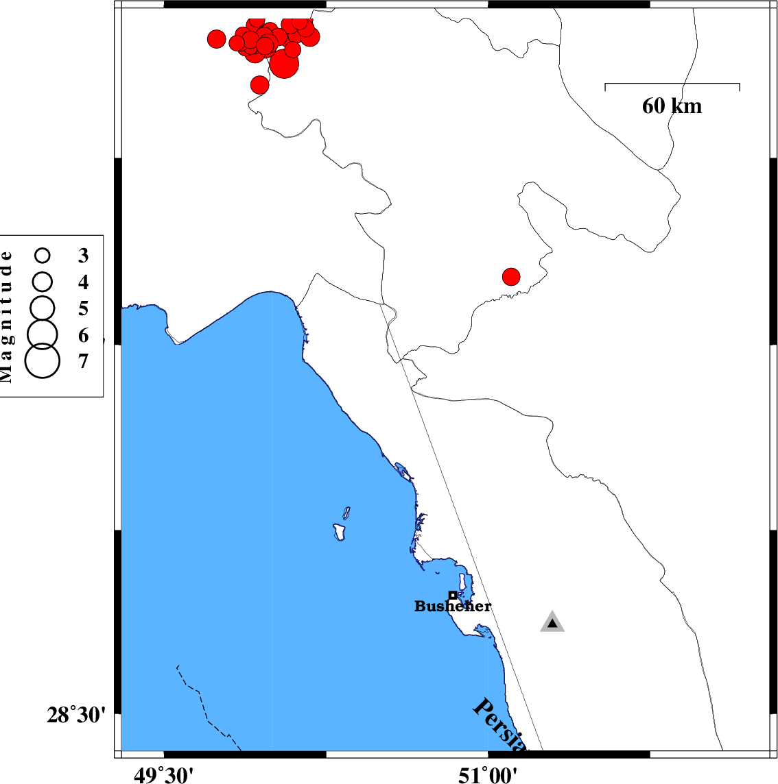 | 2021/04/19 | 04:22:19.6 | 08:52:19.6 | 29.827 | 50.61 | 12 | ML3.2 | Bushehr Province, 30 km North of Bandar-e genaveh | ||