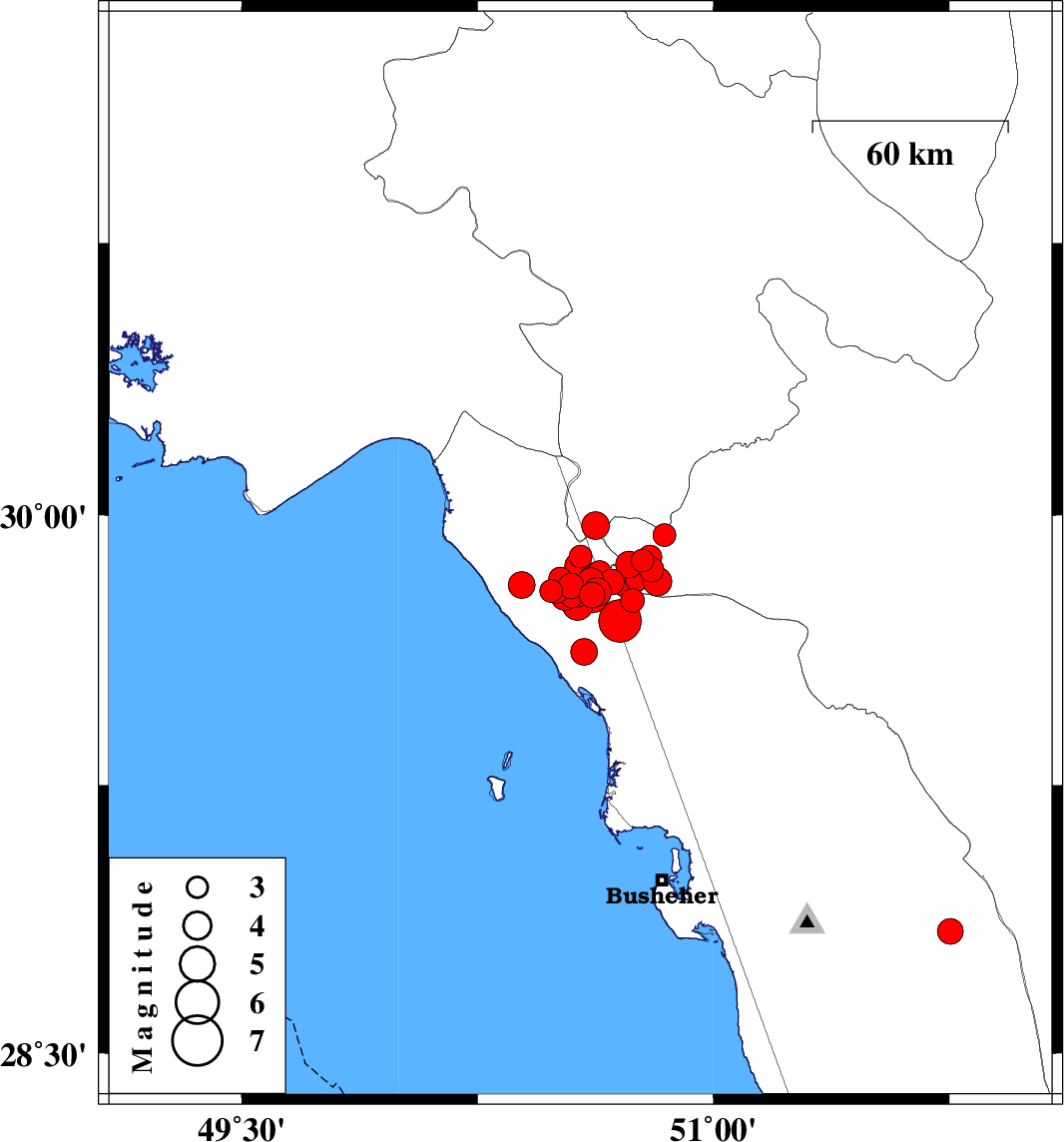 | 2021/04/18 | 06:41:50.1 | 11:11:50.1 | 29.707 | 50.703 | 20 | ML6 | Bushehr Province, 24 km North-East of Bandar-e genaveh | ||