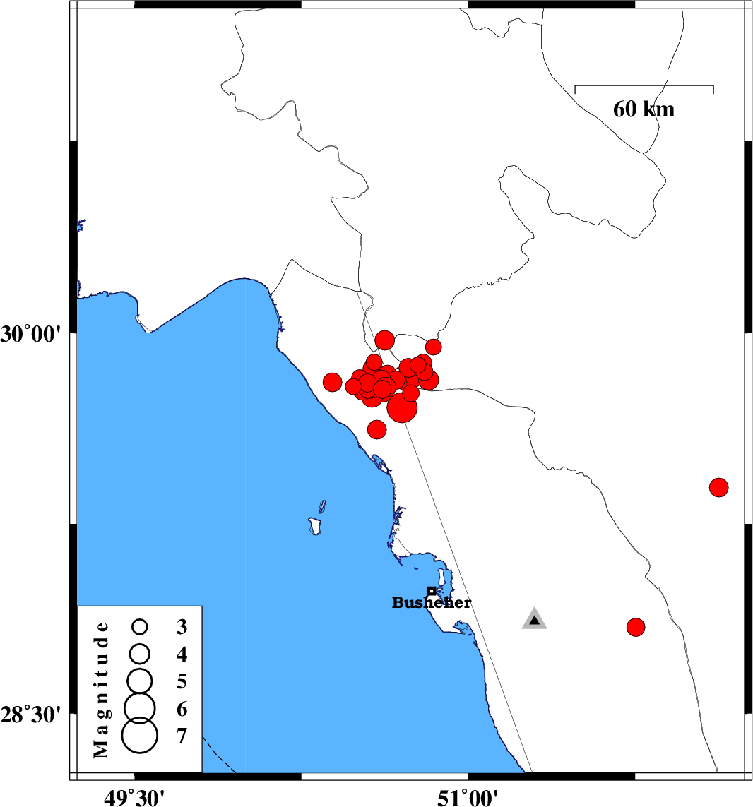 | 2021/04/18 | 06:41:50.1 | 11:11:50.1 | 29.707 | 50.703 | 20 | ML6 | Bushehr Province, 24 km North-East of Bandar-e genaveh | ||
