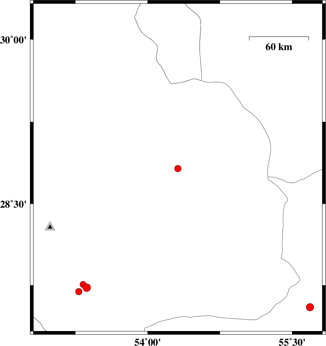 2021/04/19 | 07:16:24.3 | 11:46:24.3 | 28.824 | 54.314 | 12 | ML3.1 | Fars Province, 23 km -West of Darab | ||