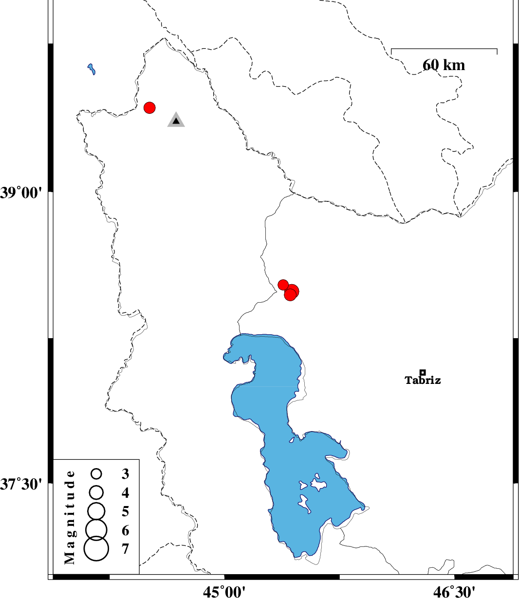 | 2023/09/17 | 19:30:02.9 | 23:00:02.9 | 39.425 | 44.51 | 8 | ML3.4 | Azarbaijan Gharbi Province, 15 km North of Maku |