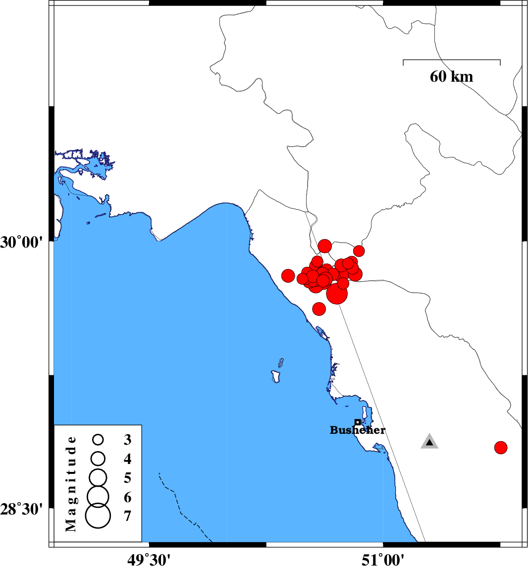 | 2021/04/19 | 04:22:19.6 | 08:52:19.6 | 29.827 | 50.61 | 12 | ML3.2 | Bushehr Province, 30 km North of Bandar-e genaveh | ||