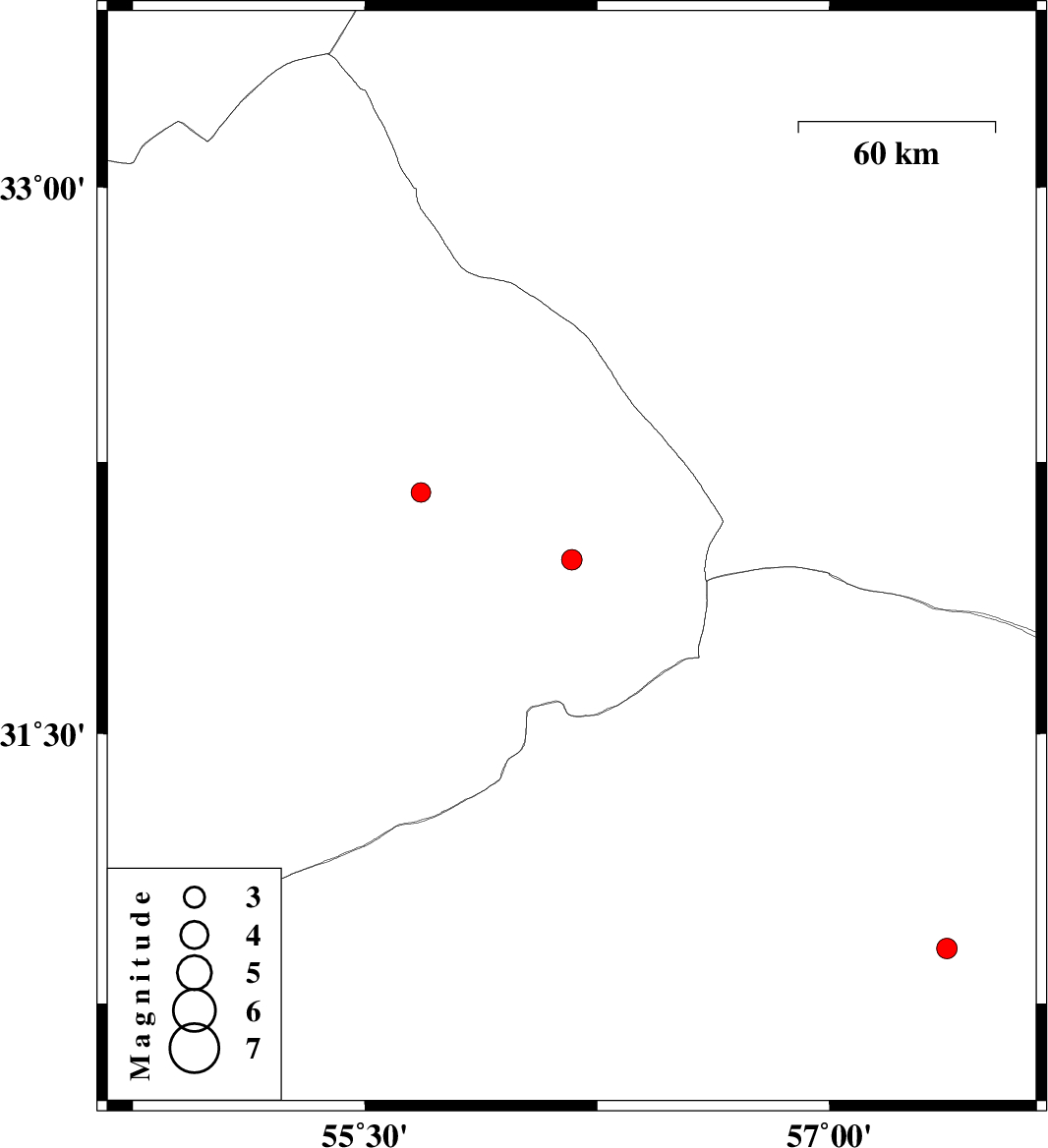 | 2023/09/29 | 01:39:12.4 | 05:09:12.4 | 30.904 | 57.38 | 12 | ML3 | Kerman Province, 78 km -East of Zarand |