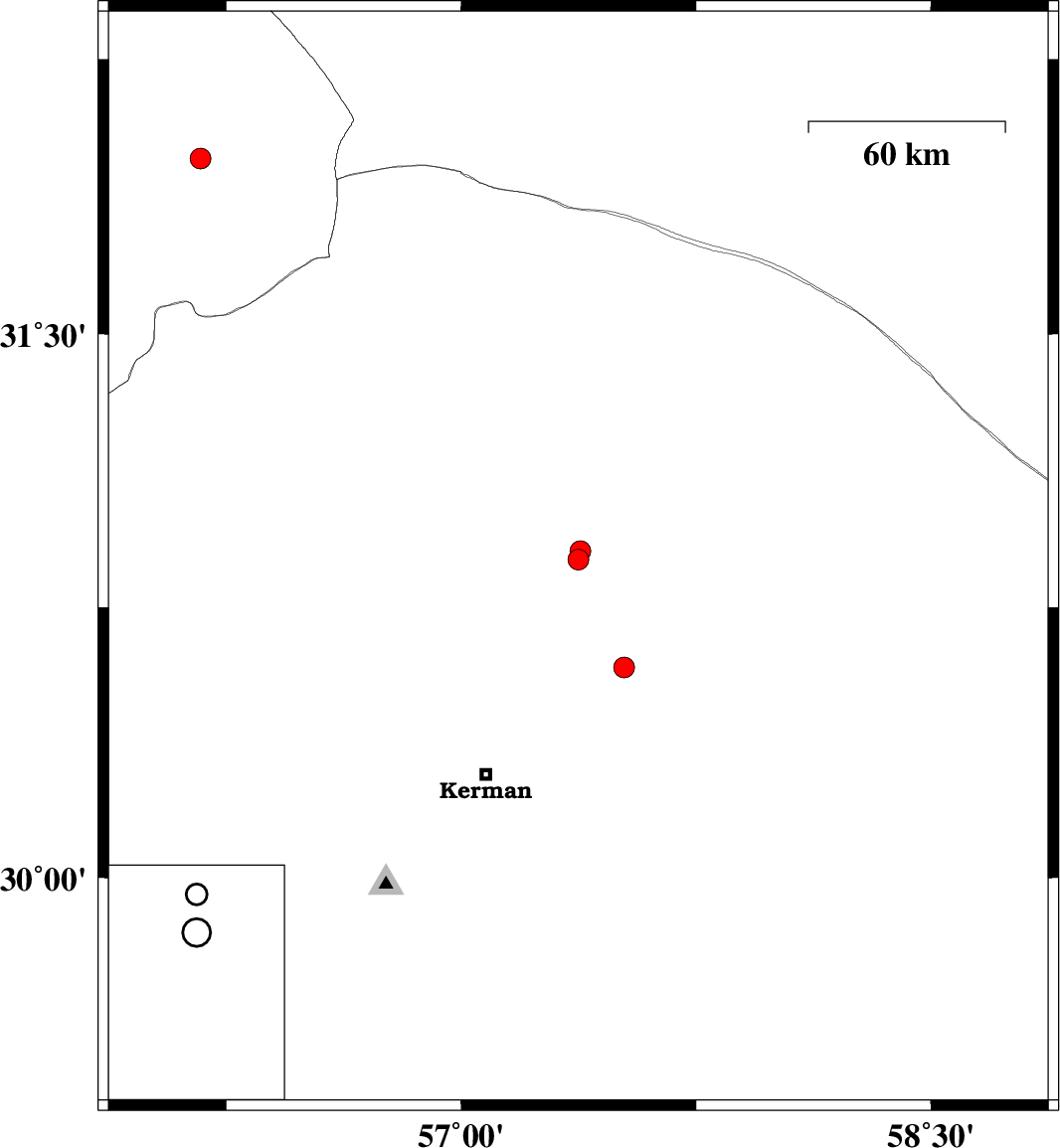 2023/09/21 | 17:08:10.9 | 20:38:10.9 | 30.583 | 57.521 | 12 | ML3 | Kerman Province, 54 km North-East of Kerman |