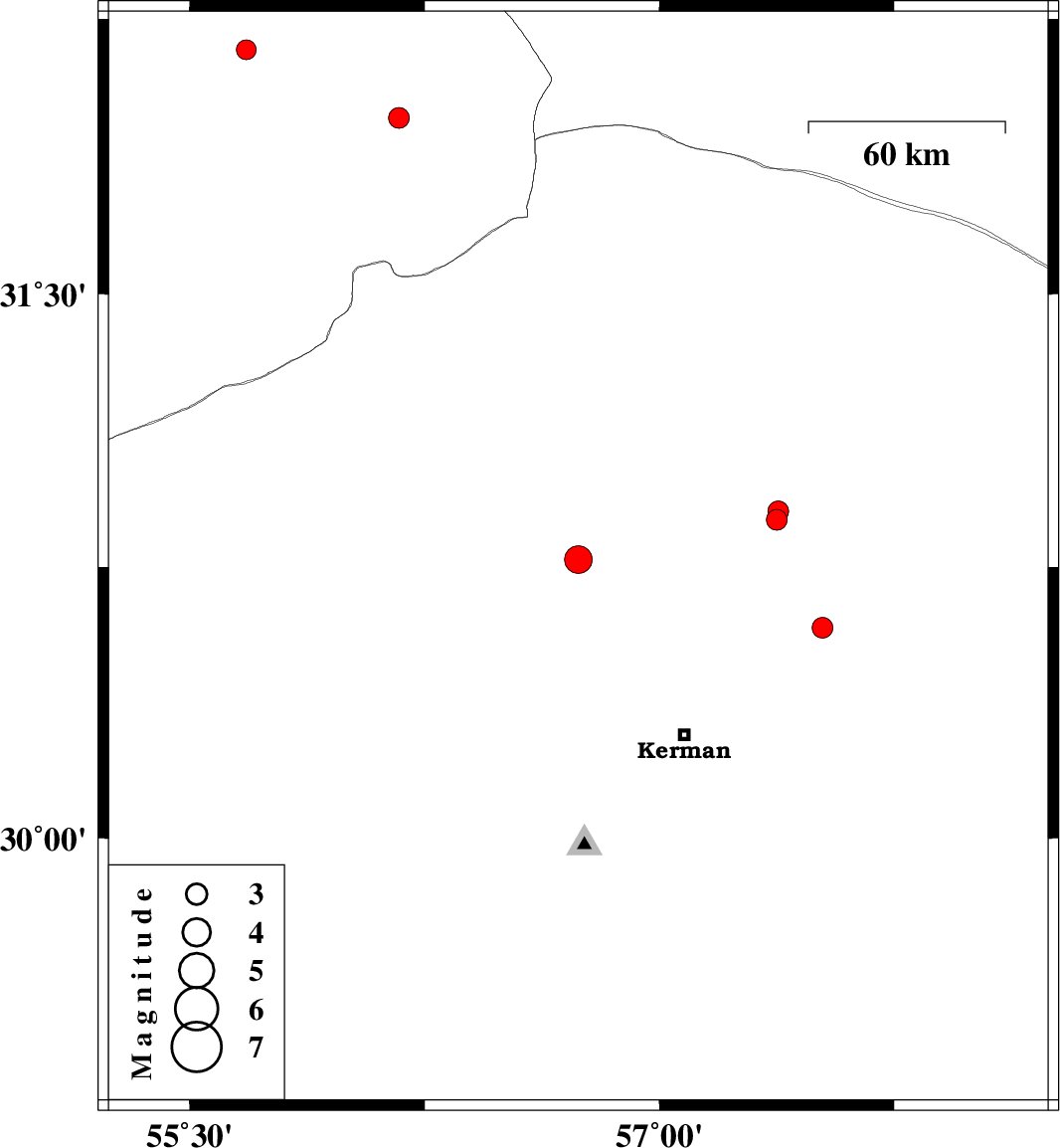 | 2023/09/21 | 17:08:10.9 | 20:38:10.9 | 30.583 | 57.521 | 12 | ML3 | Kerman Province, 54 km North-East of Kerman |