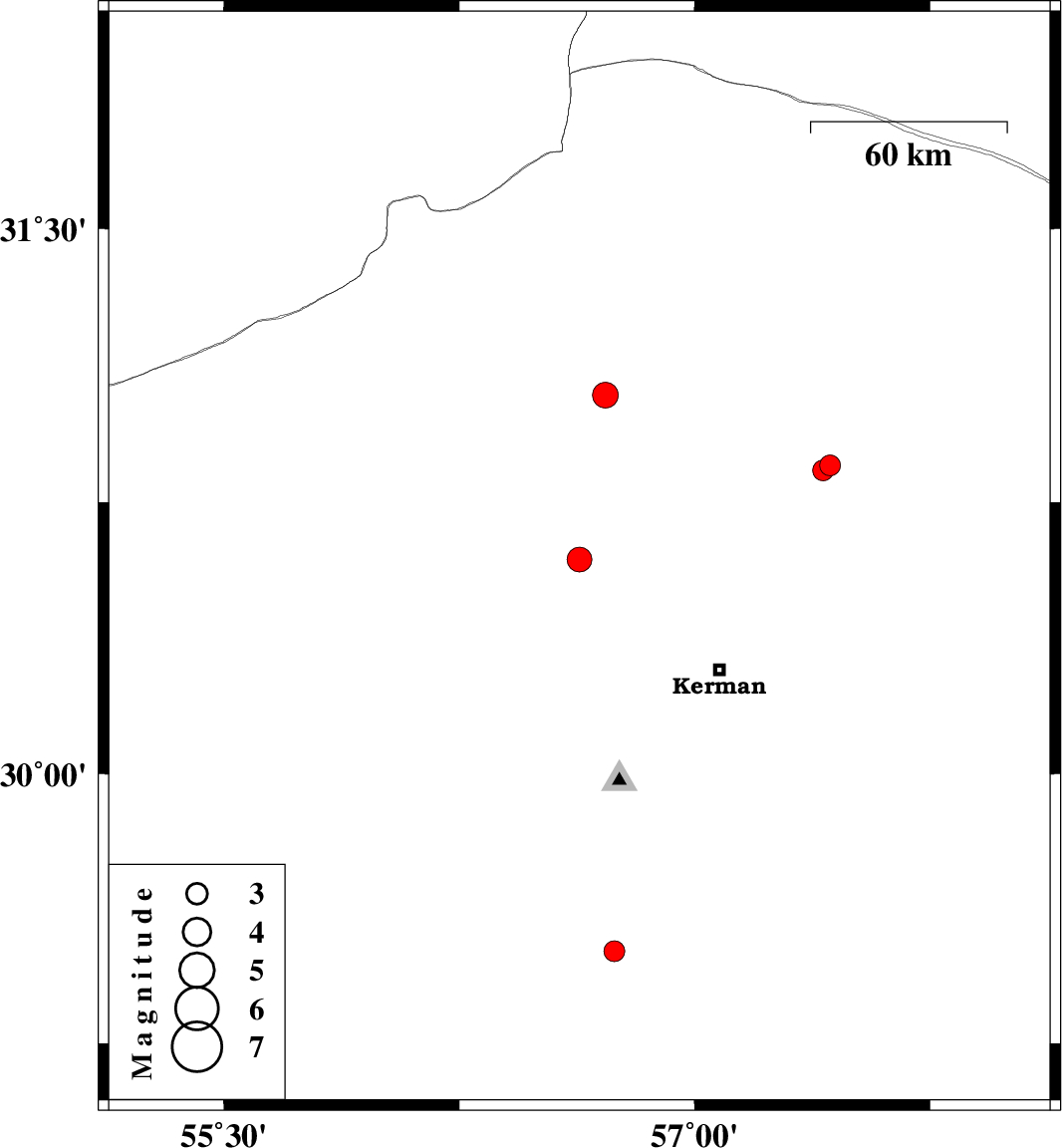 | 2023/10/16 | 02:08:25.4 | 05:38:25.4 | 30.837 | 57.41 | 12 | ML3 | Kerman Province, 80 km -East of Zarand |