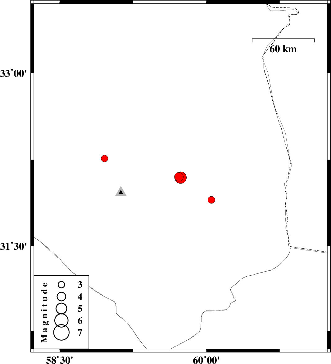 2023/10/26 21:57:18.6 01:27:18.6 32.10259.729 ML4.1 Khorasan(south) Province, 58 km South of Sarbisheh