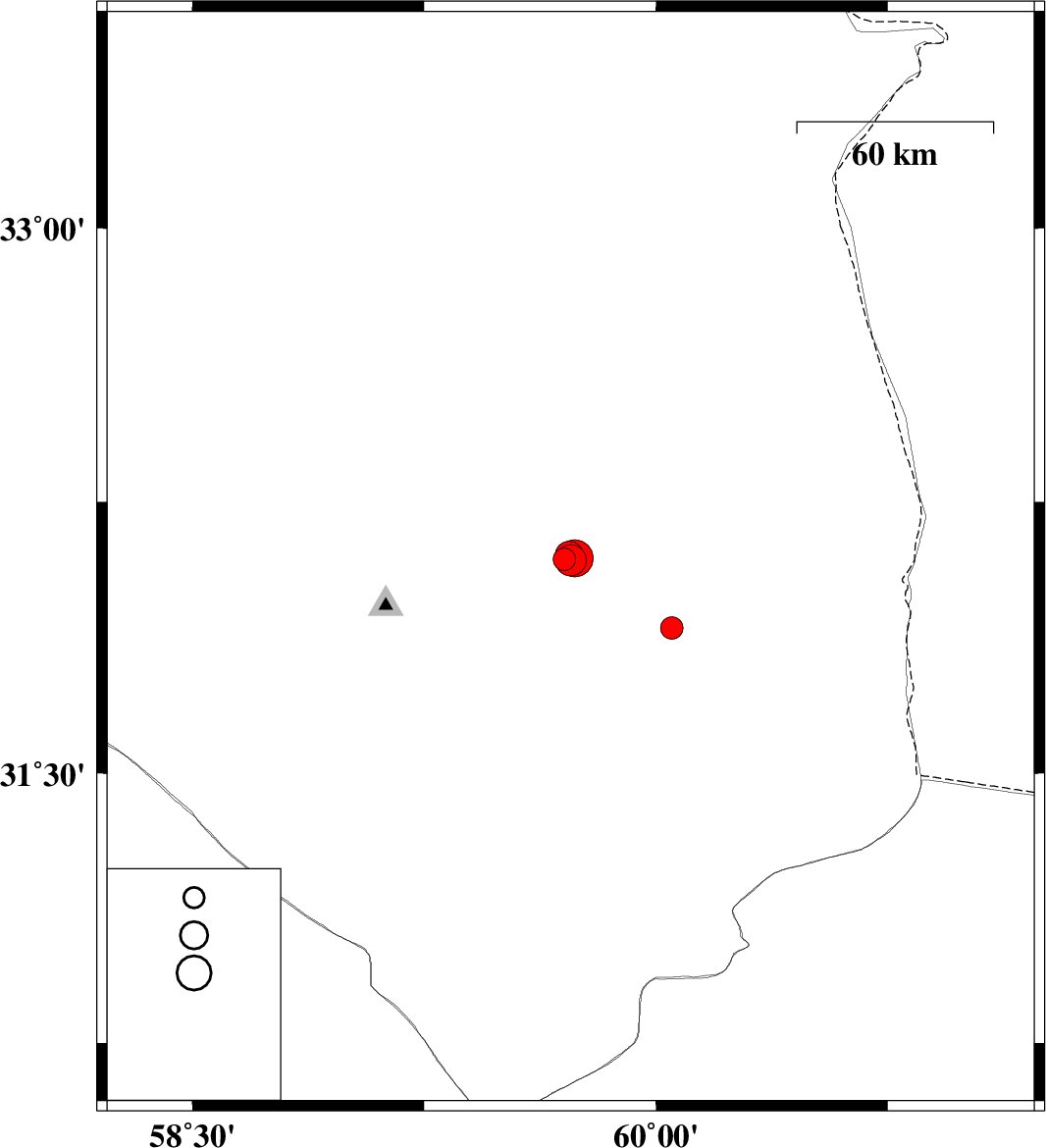 Map Region : lat:30.589-33.589  lon:58.224-61.224