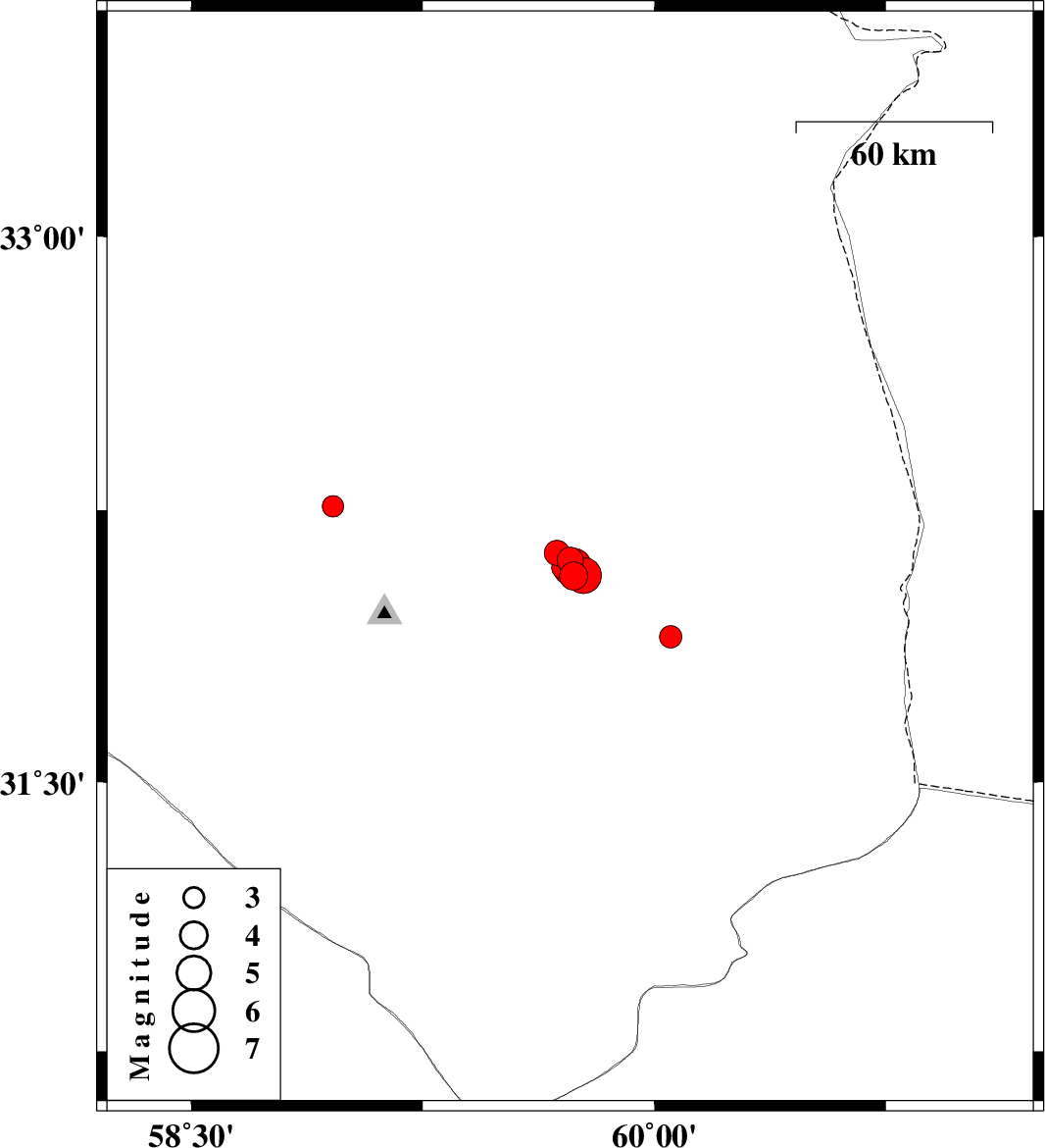 2023/10/27 12:47:25.8 16:17:25.8 32.08959.72410 ML4.5 Khorasan(south) Province, 60 km South of Sarbisheh