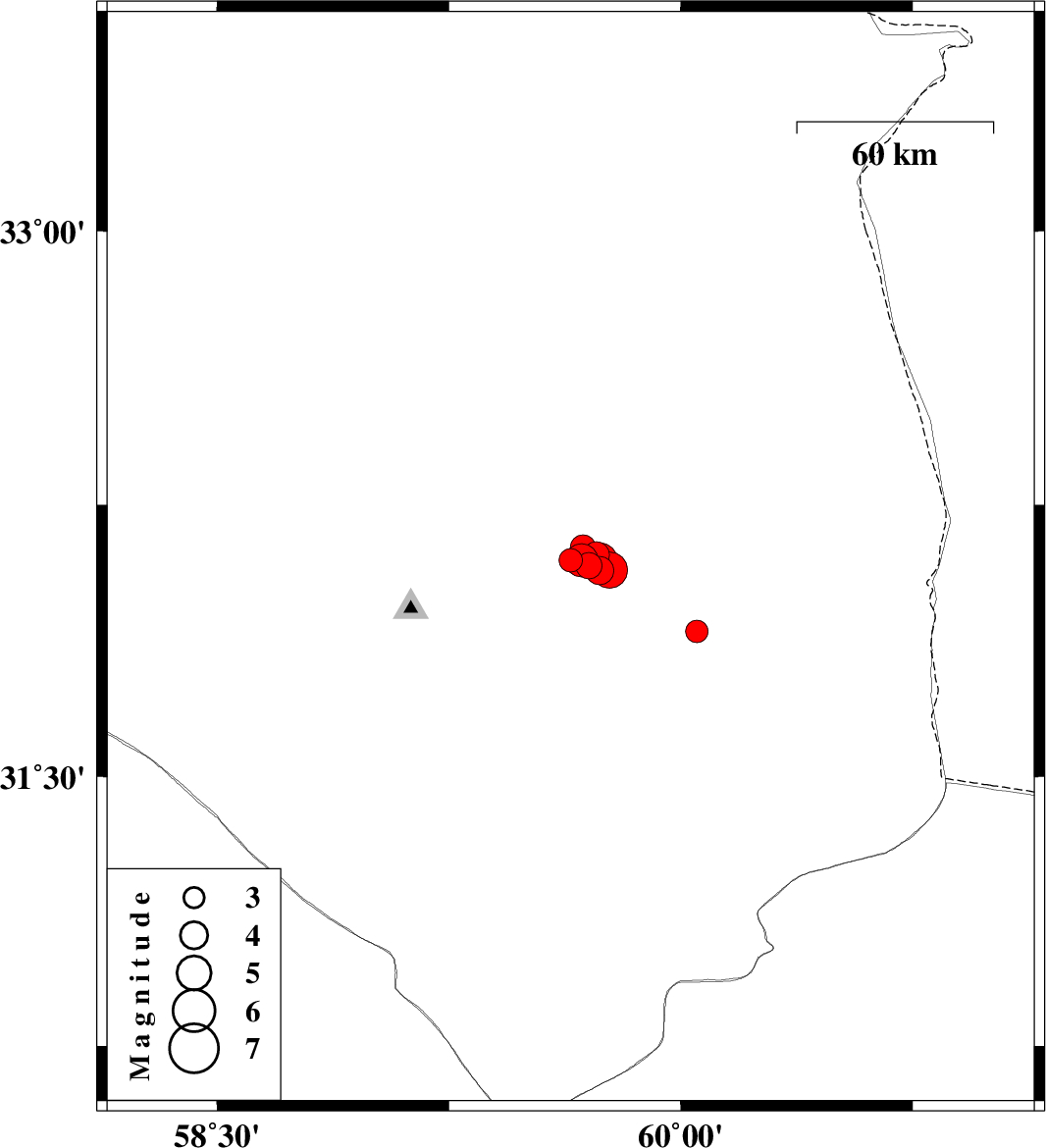 | 2023/10/26 | 20:34:11.4 | 00:04:11.4 | 32.095 | 59.737 | 8 | ML5.4 | Khorasan(south) Province, 59 km South of Sarbisheh | ||