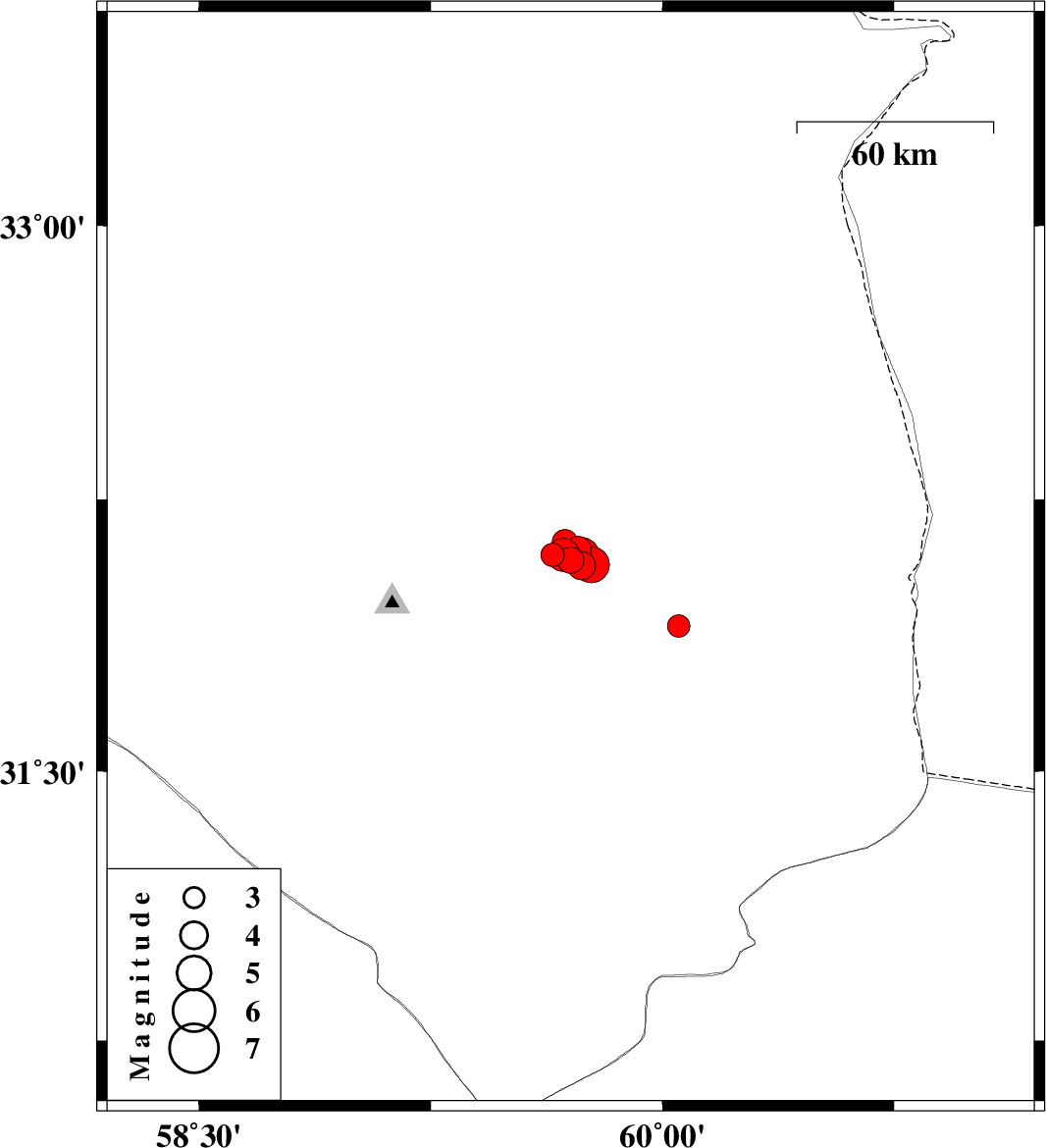 | 2023/10/26 | 20:34:11.4 | 00:04:11.4 | 32.095 | 59.737 | 8 | ML5.4 | Khorasan(south) Province, 59 km South of Sarbisheh | ||