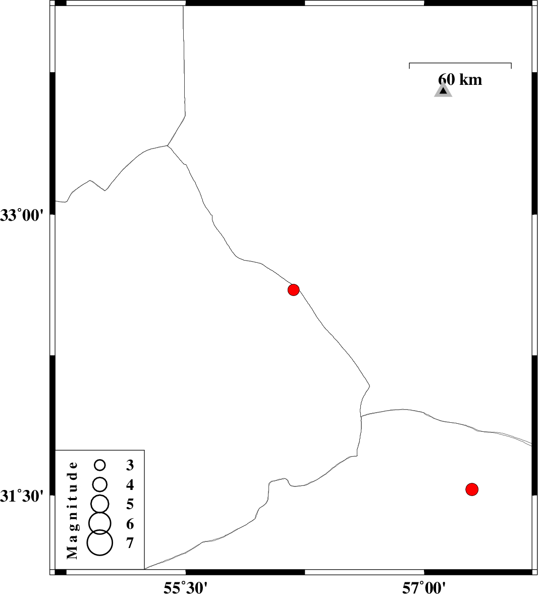 | 2023/11/03 | 10:07:39.9 | 13:37:39.9 | 31.531 | 57.301 | 16 | ML3.5 | Kerman Province, 55 km North-East of Ravar |