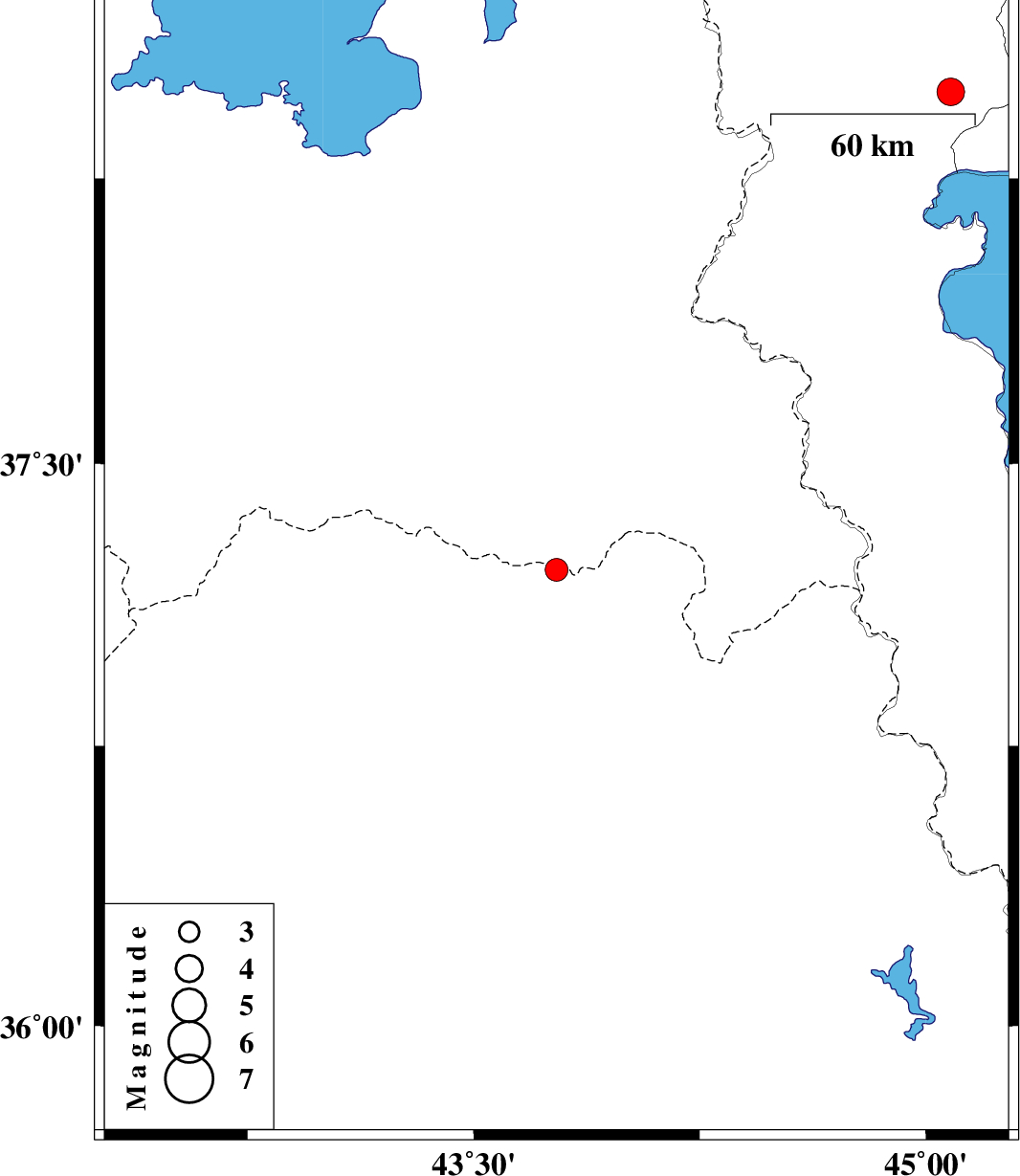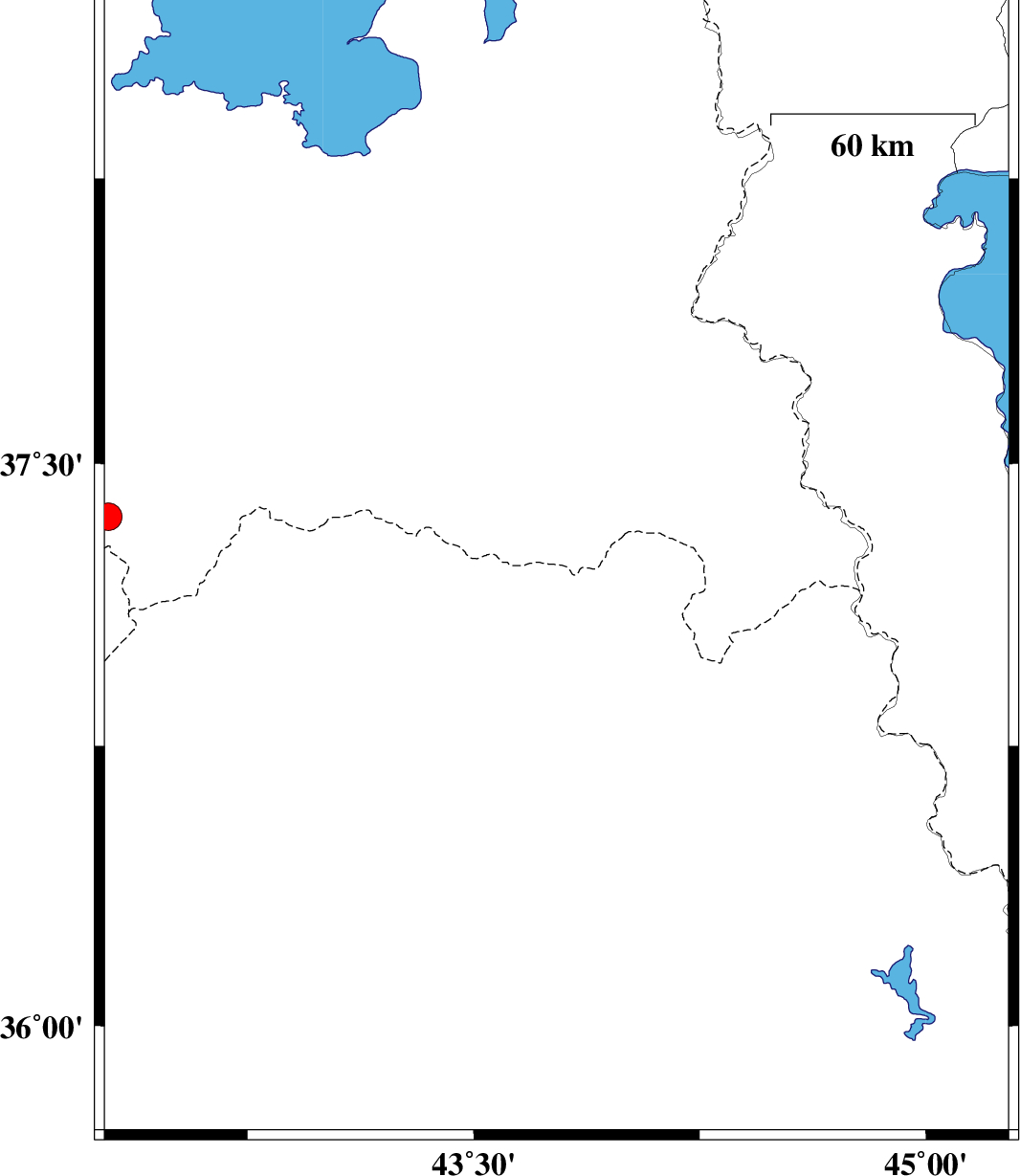 | 2023/11/16 | 11:31:45.3 | 15:01:45.3 | 37.219 | 43.775 | 8 | ML3.4 | Iraq | ||