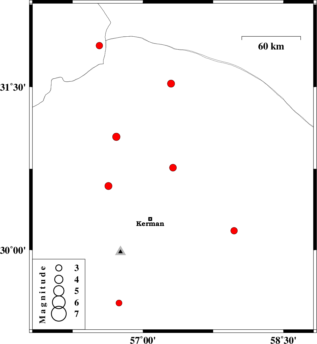 | 2023/10/20 | 17:47:39.5 | 21:17:39.5 | 31.044 | 56.716 | 12 | ML3.7 | Kerman Province, 26 km South of Ravar |