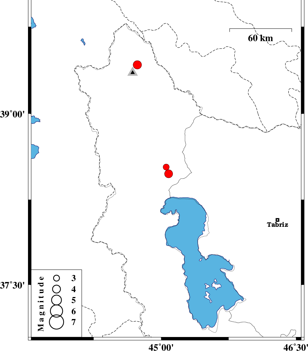 | 2023/11/13 | 14:58:05.9 | 18:28:05.9 | 39.423 | 44.736 | 10 | ML4.3 | Azarbaijan Gharbi Province, 25 km North-East of Maku | ||
