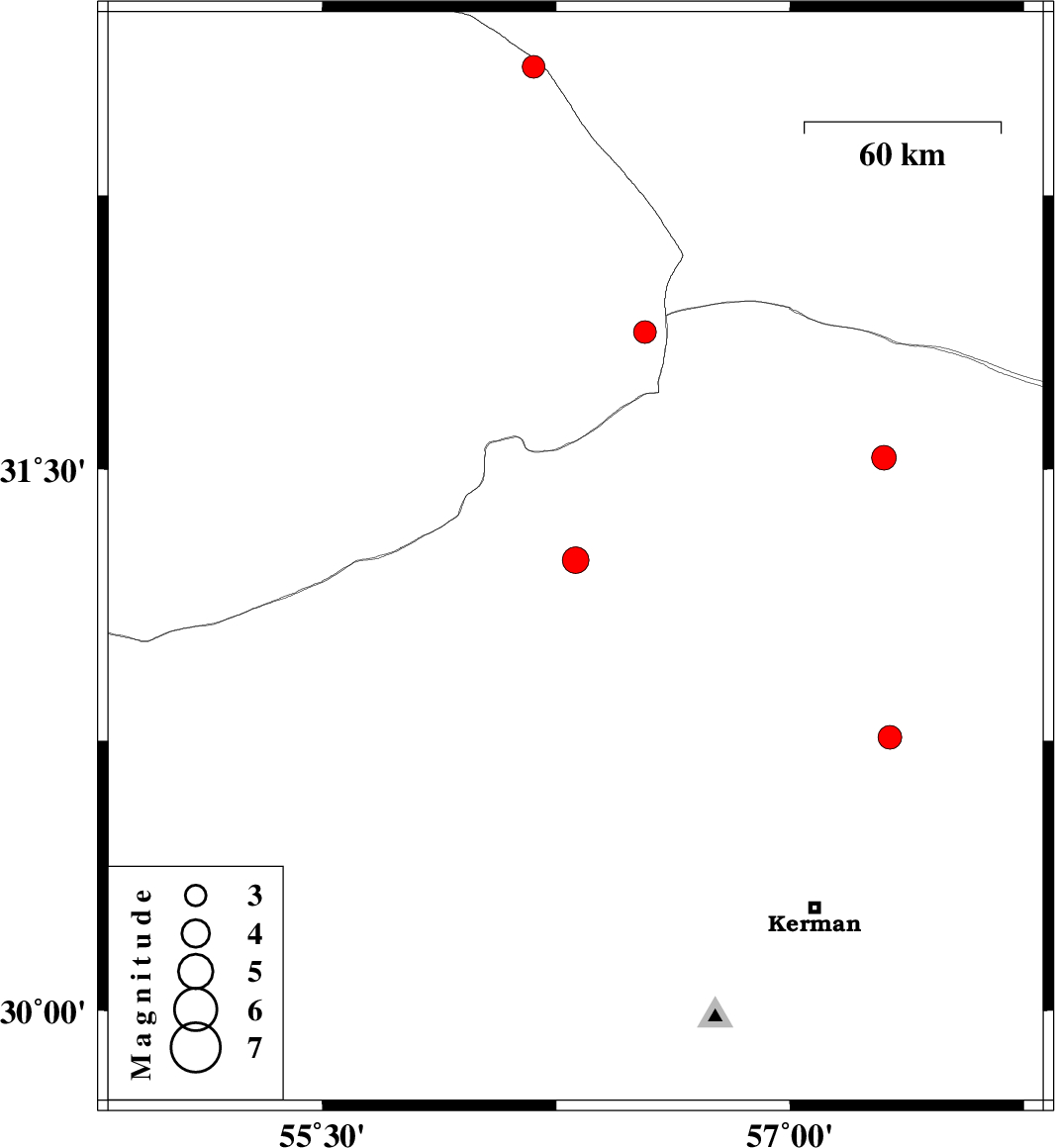| 2023/11/18 | 07:32:14.5 | 11:02:14.5 | 30.76 | 57.321 | 12 | ML3.4 | Kerman Province, 57 km North-East of Kerman | ||