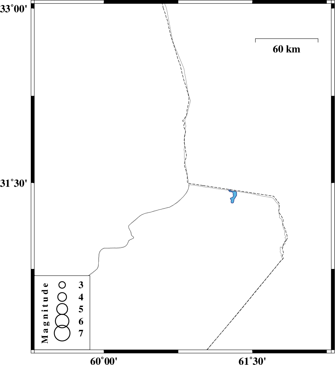 | 2023/11/28 | 01:17:15.2 | 04:47:15.2 | 31.541 | 60.796 | 12 | ML3.4 | Khorasan(south) Province, 72 km -East of Nehbandan |
