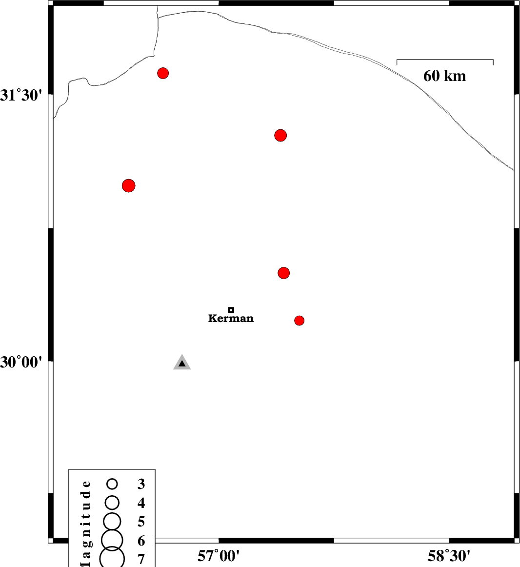 | 2023/11/18 | 07:32:14.5 | 11:02:14.5 | 30.76 | 57.321 | 12 | ML3.4 | Kerman Province, 57 km North-East of Kerman | ||
