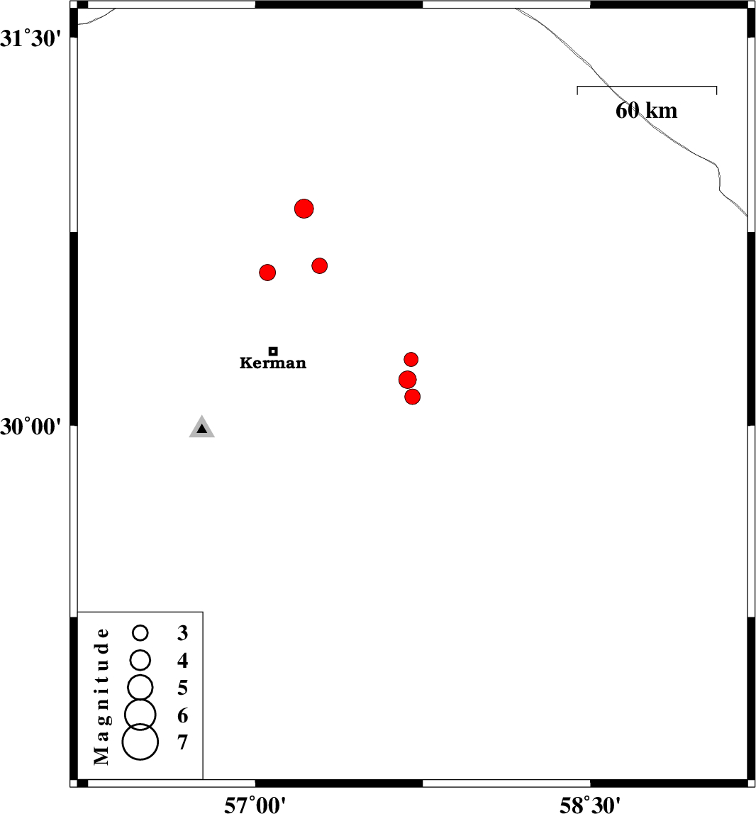 2021/03/11 | 09:19:29.8 | 12:49:29.8 | 30.177 | 57.681 | 12 | ML3.5 | Kerman Province, 59 km South-East of Kerman | ||