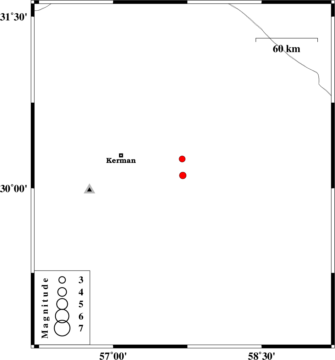 2021/03/17 | 15:10:02.4 | 18:40:02.4 | 30.256 | 57.697 | 12 | ML2.8 | Kerman Province, 59 km -East of Kerman |