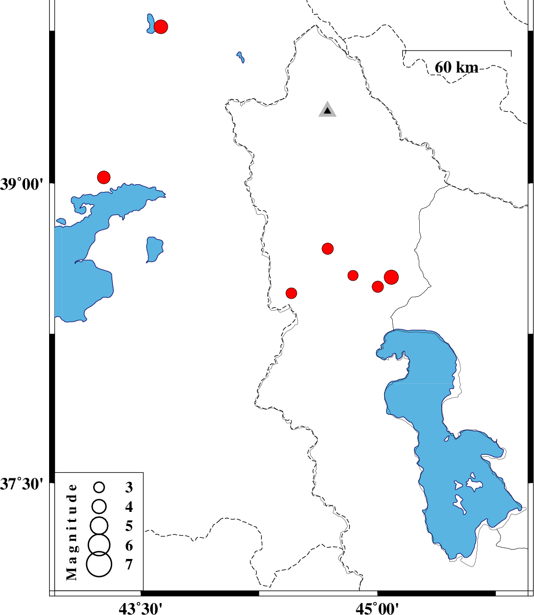 | 2021/03/05 | 10:04:47.1 | 13:34:47.1 | 38.541 | 44.844 | 10 | ML3 | Azarbaijan Gharbi Province, 9 km -West of Khoy |