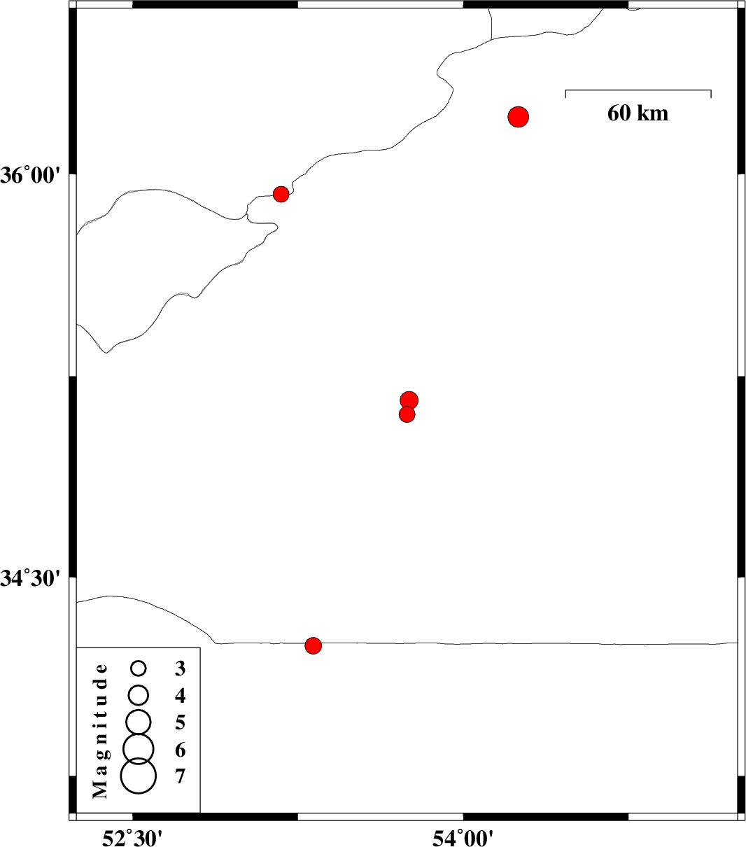 | 2020/09/02 | 08:31:11.8 | 13:01:11.8 | 35.109 | 53.745 | 12 | ML3.2 | Semnan Province, 60 km South-East of Semnan | ||