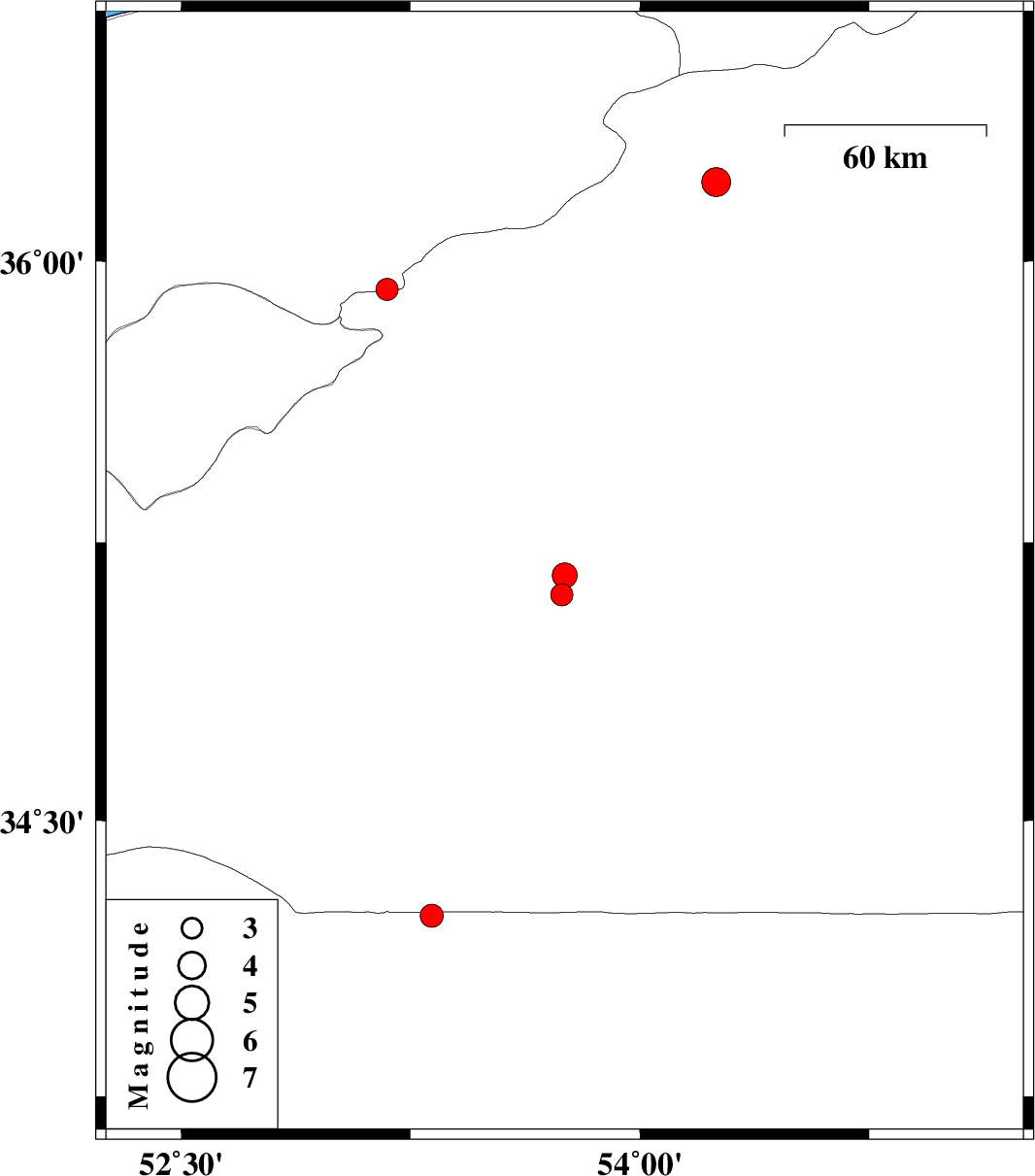 | 2020/08/29 | 19:01:02.1 | 23:31:02.1 | 36.21 | 54.25 | 10 | ML4.3 | Semnan Province, 10 km of Damghan | ||