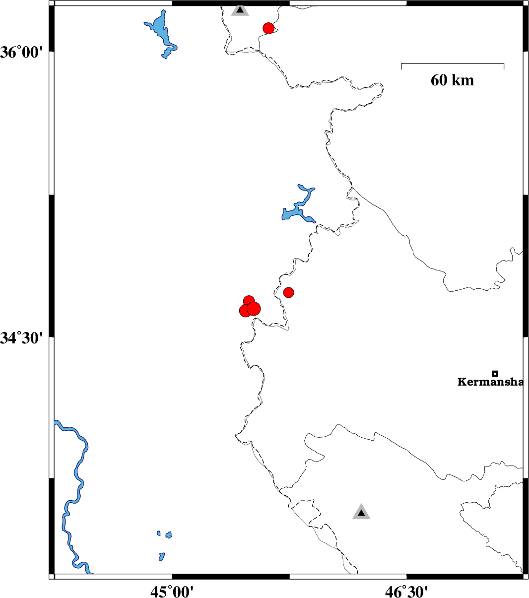 | 2020/08/23 | 20:00:35.3 | 00:30:35.3 | 34.64 | 45.47 | 41 | ML3.6 | Iraq, 17 km North-West of Qasr-E-Shirin | ||