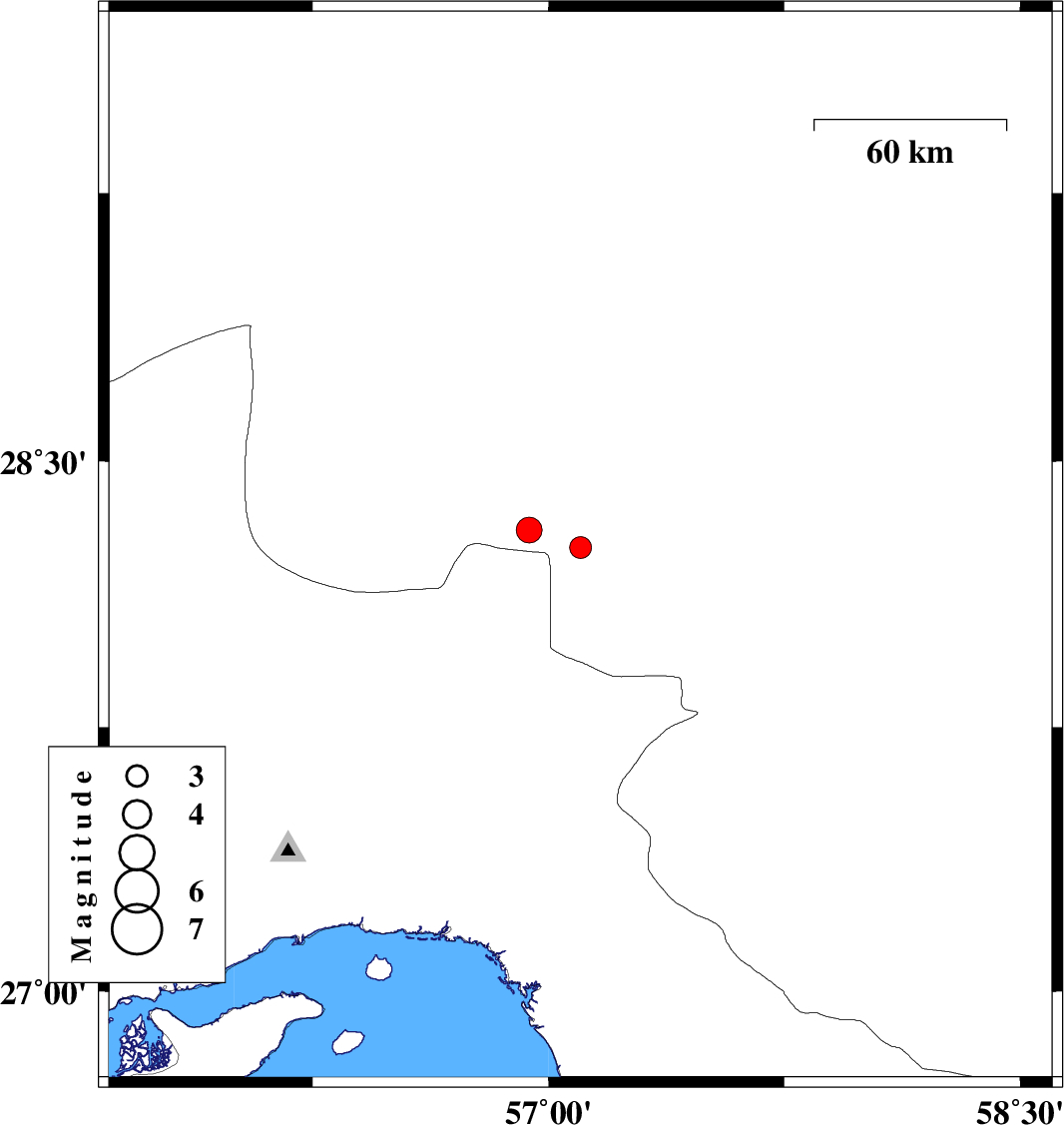 2020/08/30 | 23:26:22.0 | 03:56:22.0 | 28.257 | 57.102 | 12 | ML:3.1 | Kerman Province, 67 km North-West of Kahnuj | ||